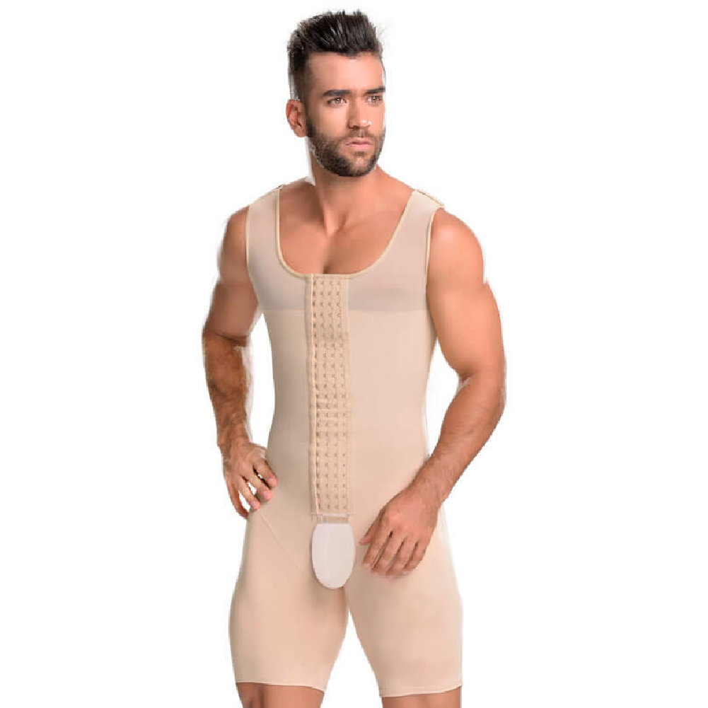 Faja corta masculina con espalda y sisa cubierta, de uso diario para después de un posquirúrgico, cuenta con gran cobertura en la zona de la espalda, cadera y pierna.